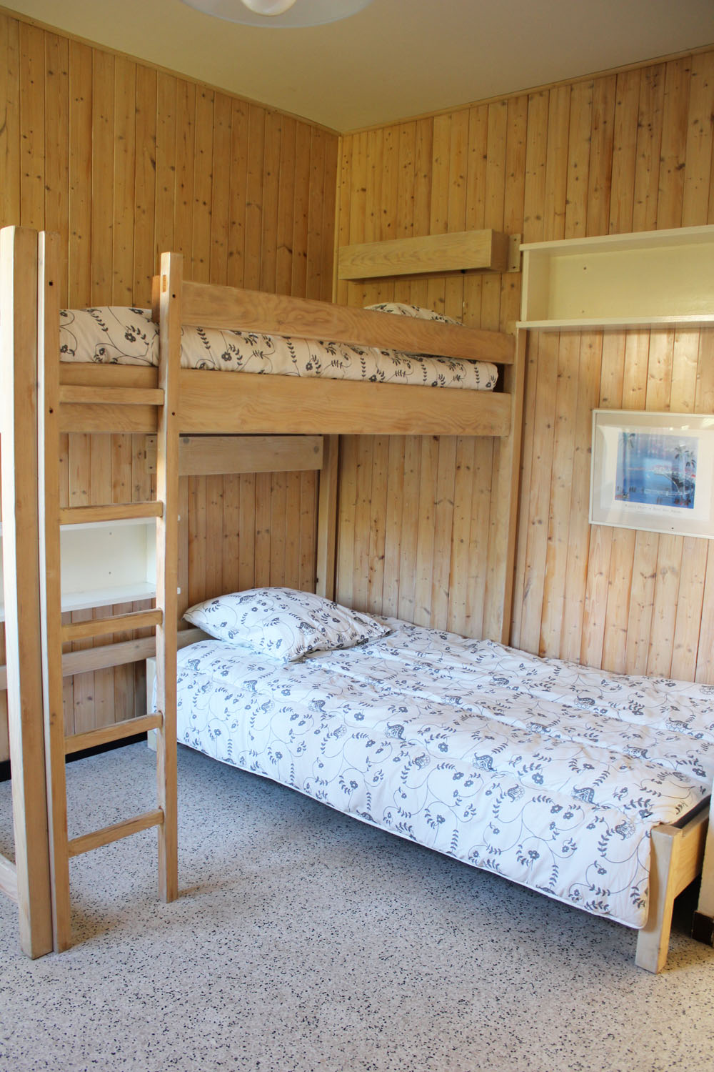 Les 3 chambres du 48 la Sousto se situent en étage. 2 chambres adultes avec lits doubles et une chambre enfants avec lits simples superposés. (L'ensemble des chambres est doté de rangements + pour l'une d'entre elle d'un petit espace toilette)