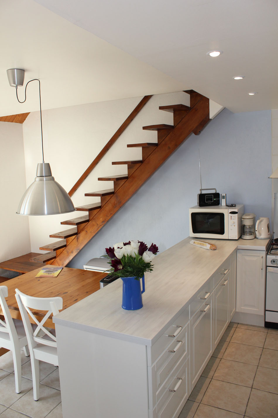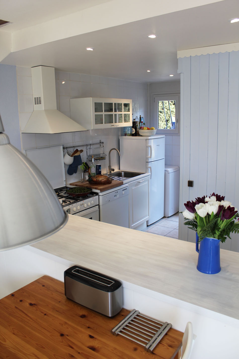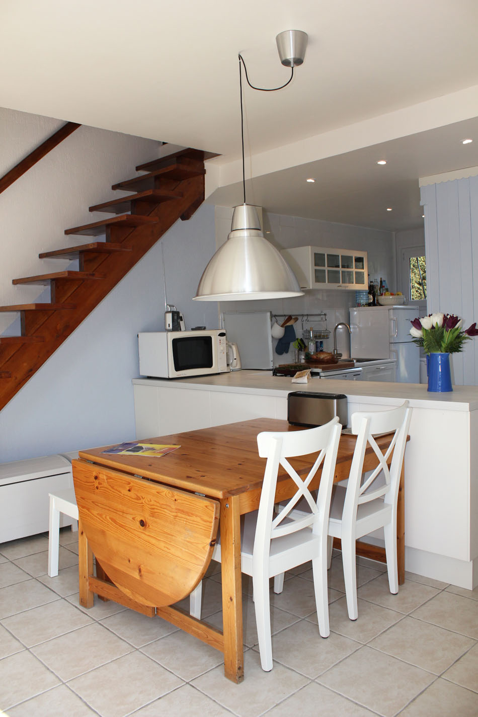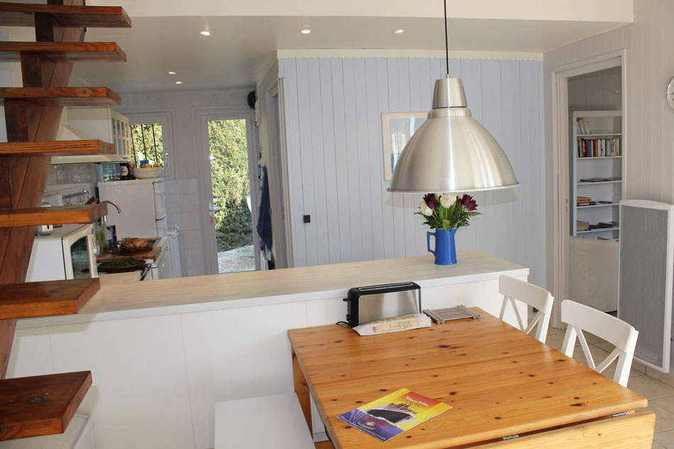 Sur une surface de 30 m² la Cuisine ouverte sur un espace séjour/salle à manger, offre la possibilité de partager des repas jusqu'à 8 personnes.